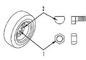 9.在更換輪胎之后,試運轉(zhuǎn)一下以檢查輪輞螺母(1)是否松動。如需要,則擰緊。
